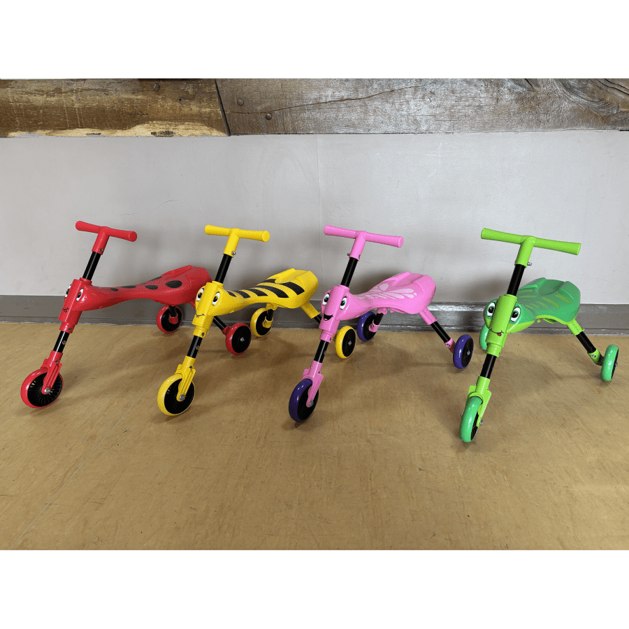 - Set of 4 colorful Skuttle Bug ride-ons – ideal for group play