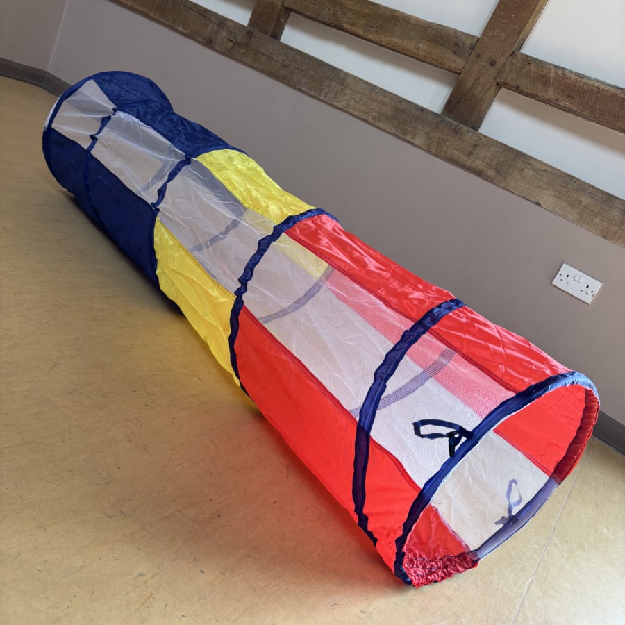 - 🌈 Eye-Catching Colours: This 6-foot pop-up tunnel features bright and playful mesh panels, making it inviting for children to explore.