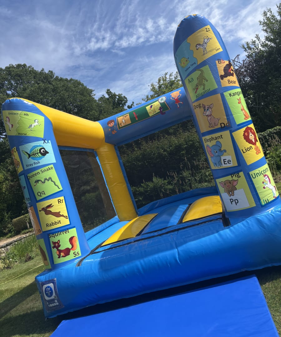 Our 7ft x 7ft ABC Mini Bouncer in Surrey & Sussex is the top choice for parents and event hosts looking to create memorable, laughter-filled celebrations. This bouncer seamlessly fits into smaller venues, community halls, church events, and even compact gardens.